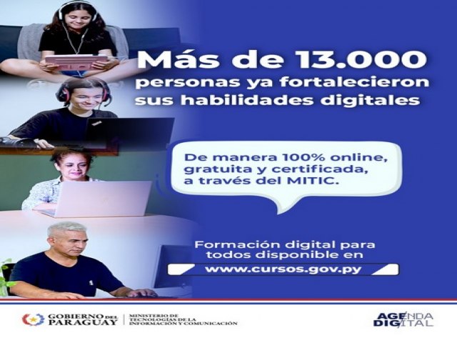 Agencia IP.- El Ministerio de Tecnologías de la Información y Comunicación (Mitic) emitió más de 20.000 certificados de cursos gratuitos, dictados a través de su campus virtual, cuya oferta académica se encuentra disponible en cursos.gov.py.